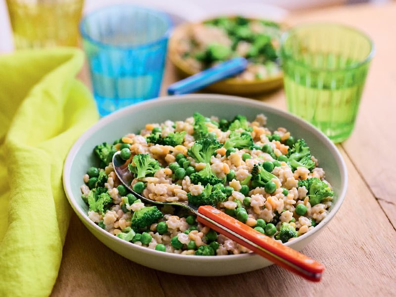Côté équilibre, cette recette végétarienne est source de protéines, avec des protéines végétales (lentilles corail, pois, pâtes complètes) et animales (emmental). Une association de choc, couvrant à elle seule 60 à 70 % des besoins journaliers de l’enfant en protéines !